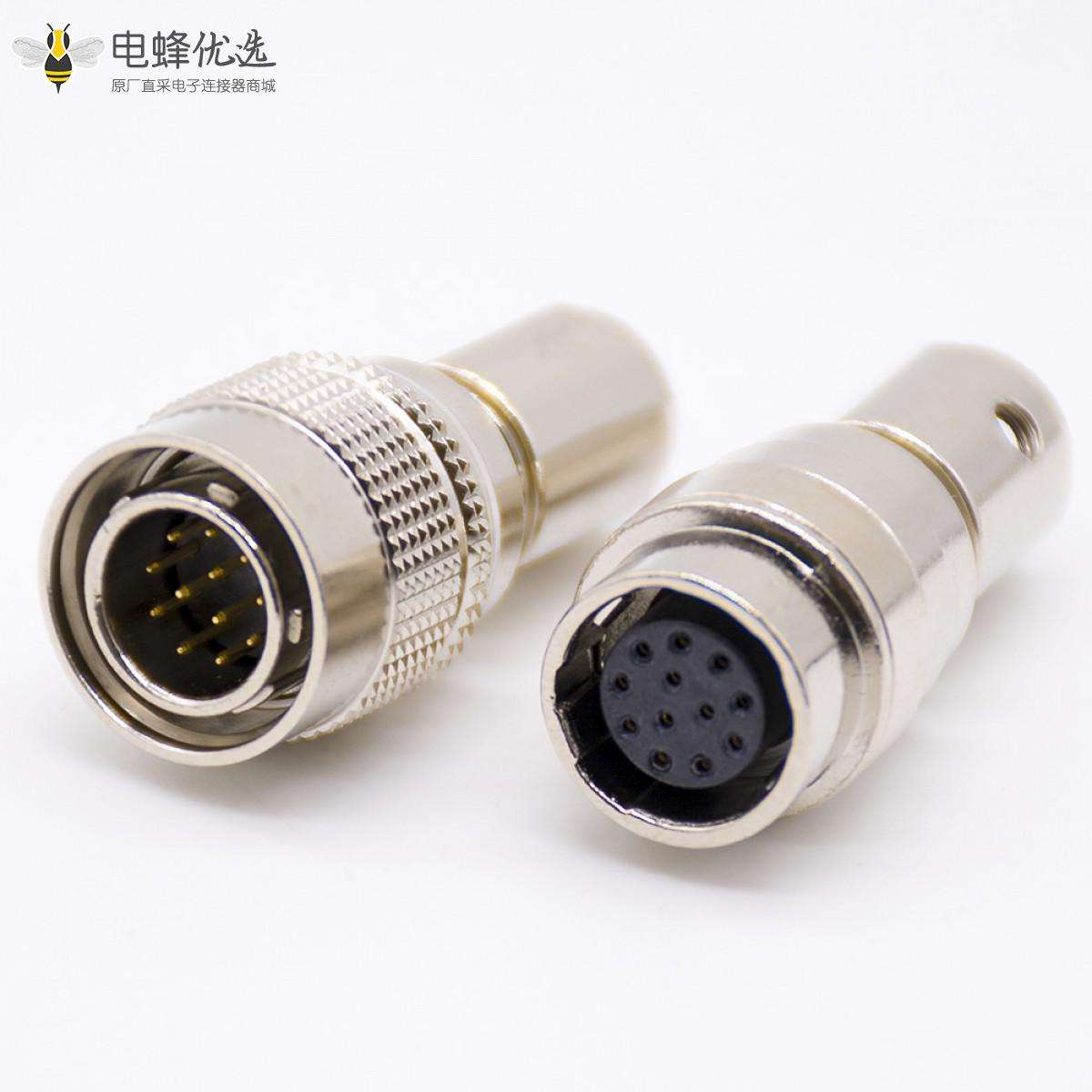 推拉自锁插头12芯公插头+母插座一对直式焊杯HR10系列微型推拉自锁连接器