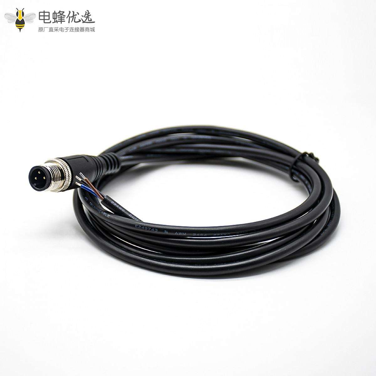 M12,线束, A Code,单边线,3芯,公,直,接线,焊接,不带屏蔽,2米;