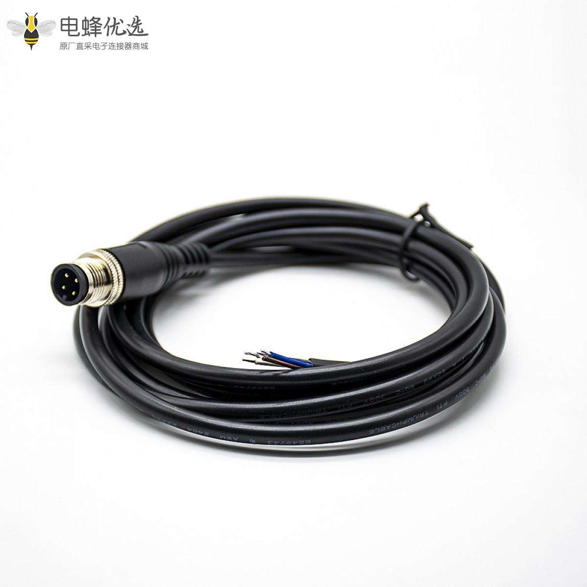 M12,线束, A Code,单边线,4芯,公,直,接线,焊接,不带屏蔽,2米;