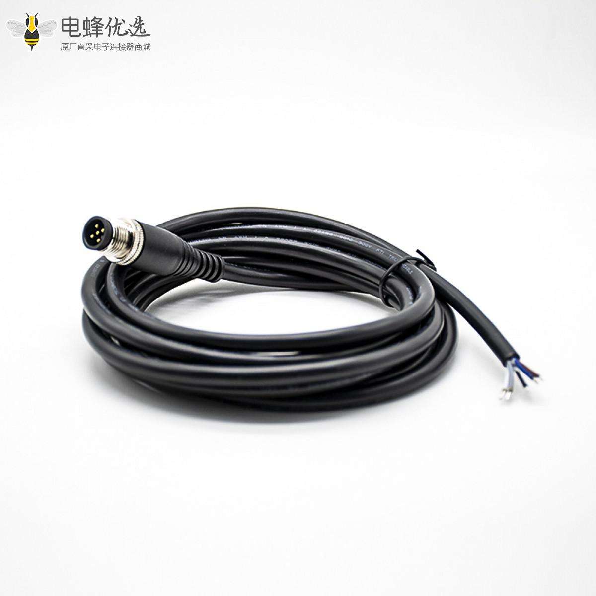 M12,线束, A Code,单边线,5芯,公,直,接线,焊接,不带屏蔽,2米;