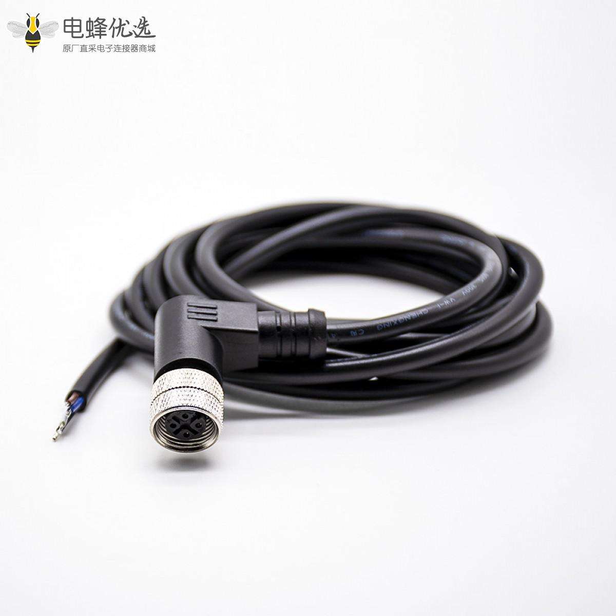 M12,A 编码,线束,4芯,母,90°弯,焊线,单边,不带屏蔽,2米;