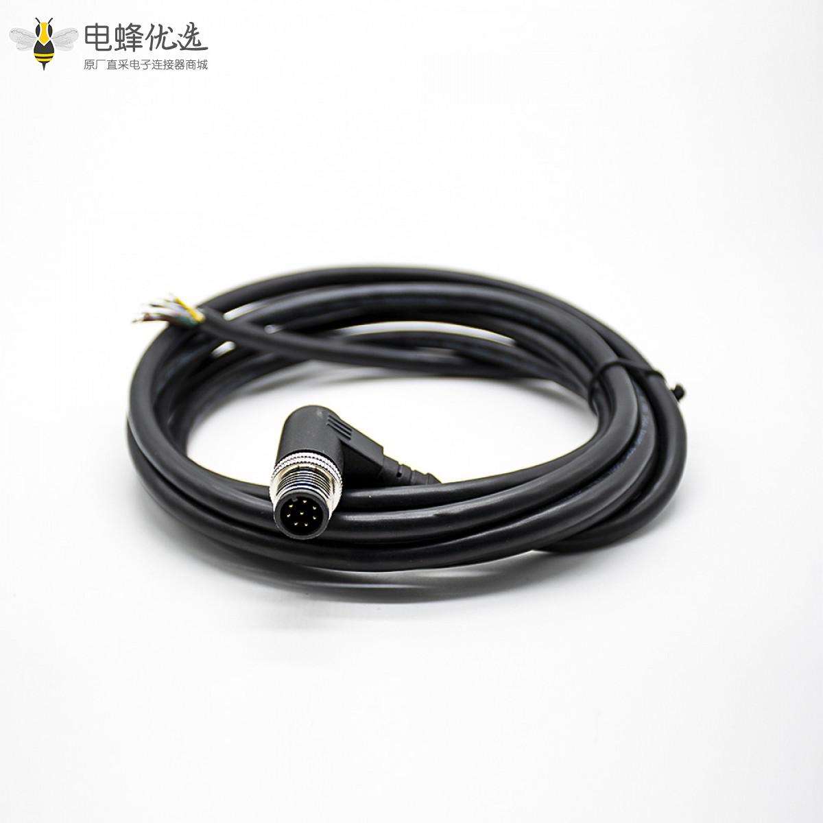 M12,A 编码,线束,8芯,公头,弯式,焊线,单边,不带屏蔽,2米;