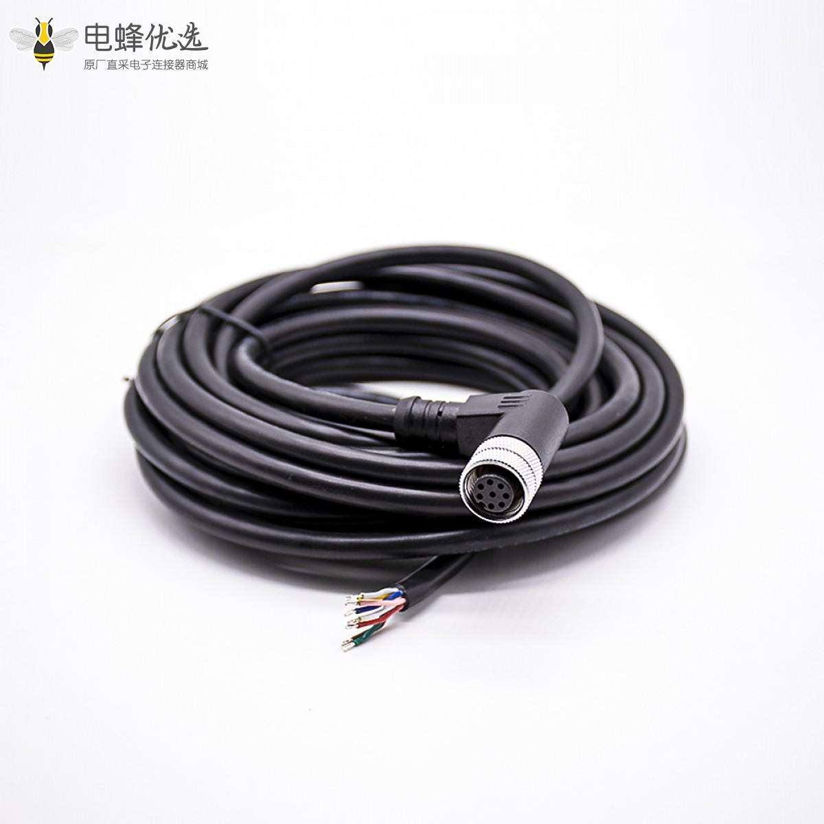 M12,A 编码,线束,8芯,母,弯式,焊线,单边,不带屏蔽,5米;