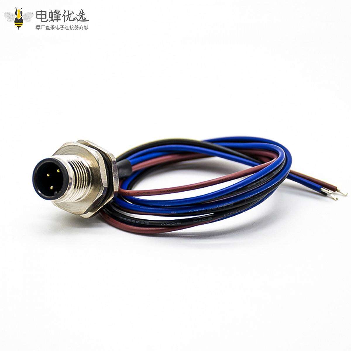 M12,板端插座,A扣,3芯,直式,公头板端,焊线,后锁板,防水,带屏蔽,0.5M;