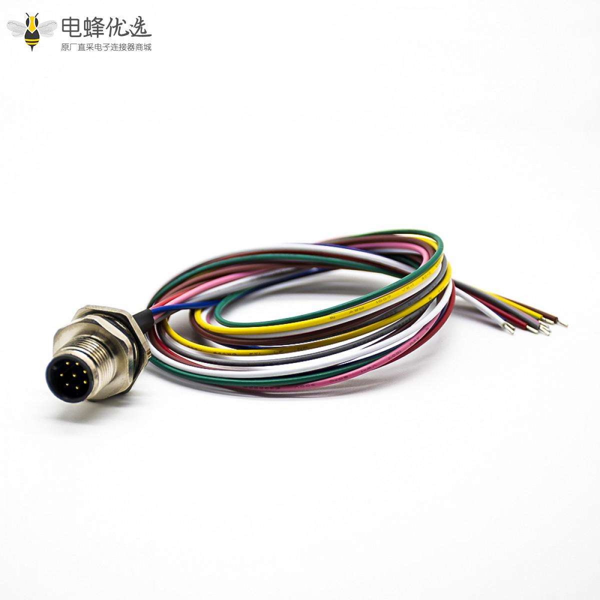M12,板端插座,A扣,8芯,直式,公头板端,焊线,后锁板,防水,带屏蔽,0.2M;