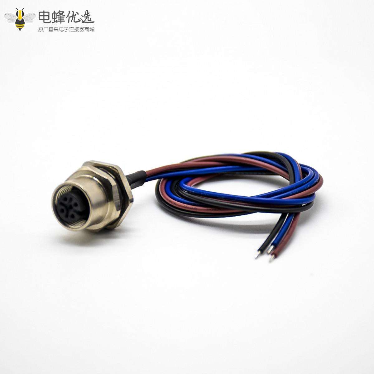 M12,板端插座,A扣,3芯,直式,母头板端,焊线,后锁板,防水,带屏蔽,0.2M;