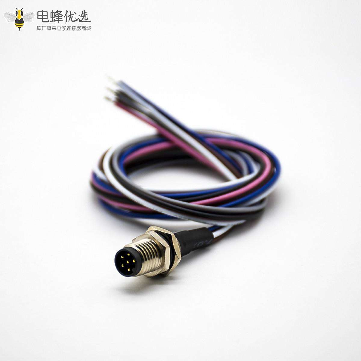 - M8,板端插座,A扣,6芯,直式,公头板端,焊线,后锁板,防水,带屏蔽,0.2M;