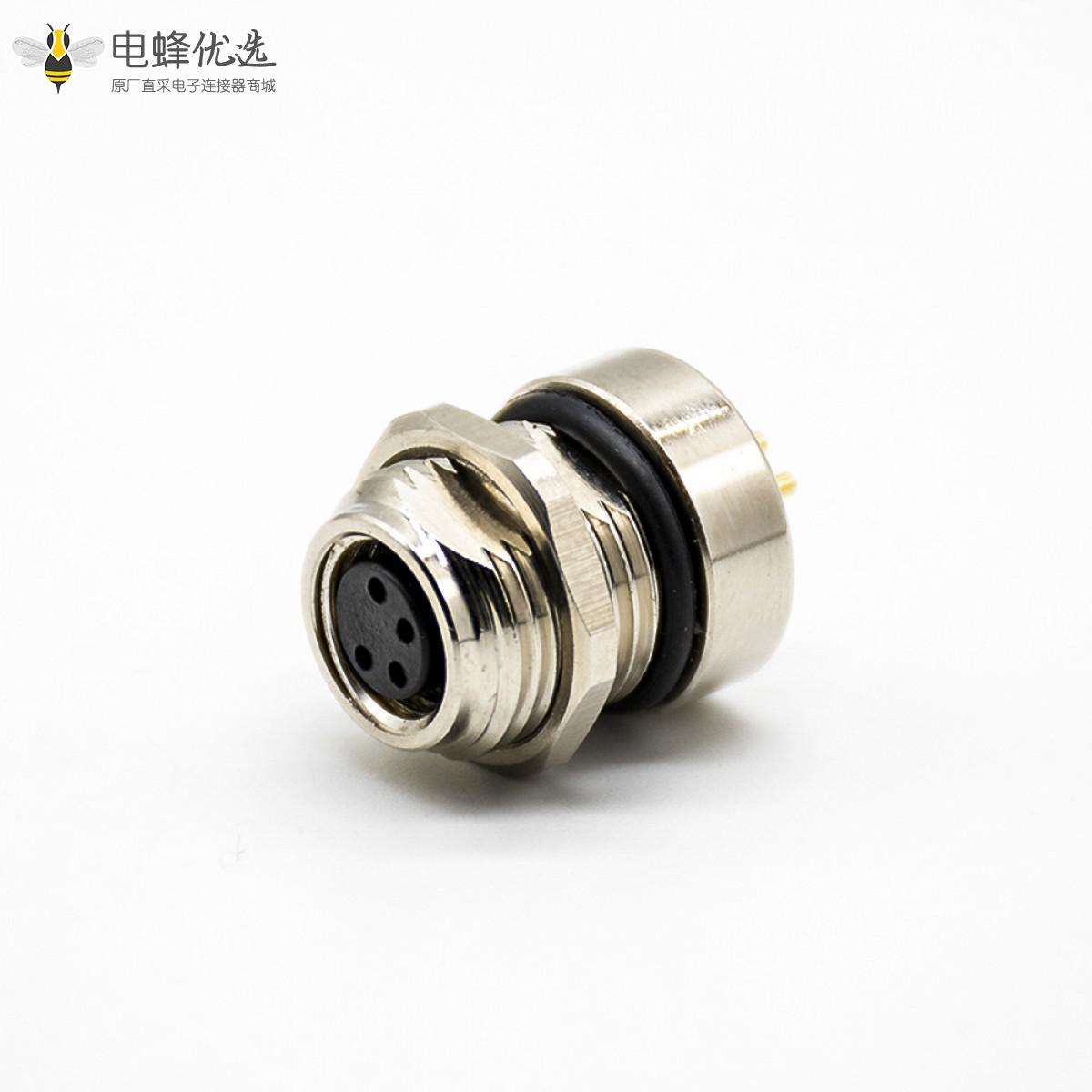 - M8板端插座,180°,4芯,母头,接PCB板,焊接式,前锁板,防水;