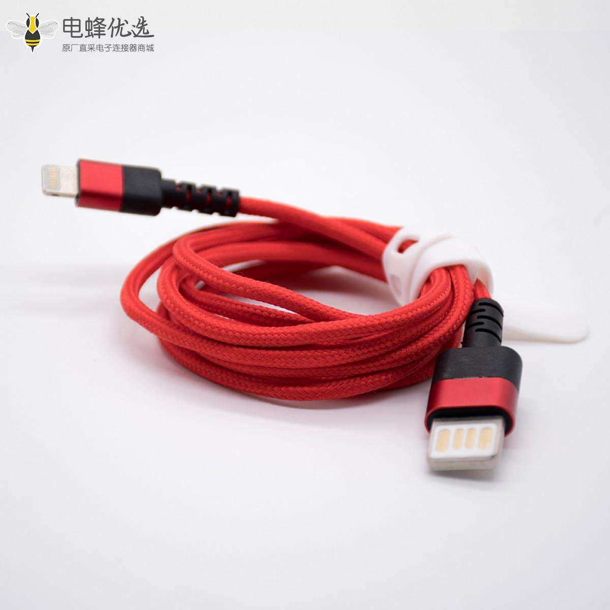 USB转接线,苹果插头,公头,直式,苹果插头,公头,直式,红色编织线;