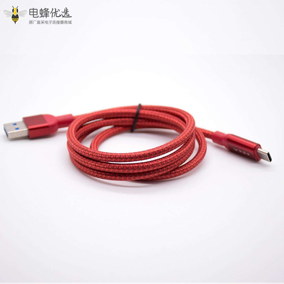 USB转接线,USB,公头,直式,Type-C,公头,直式,红色编织线;