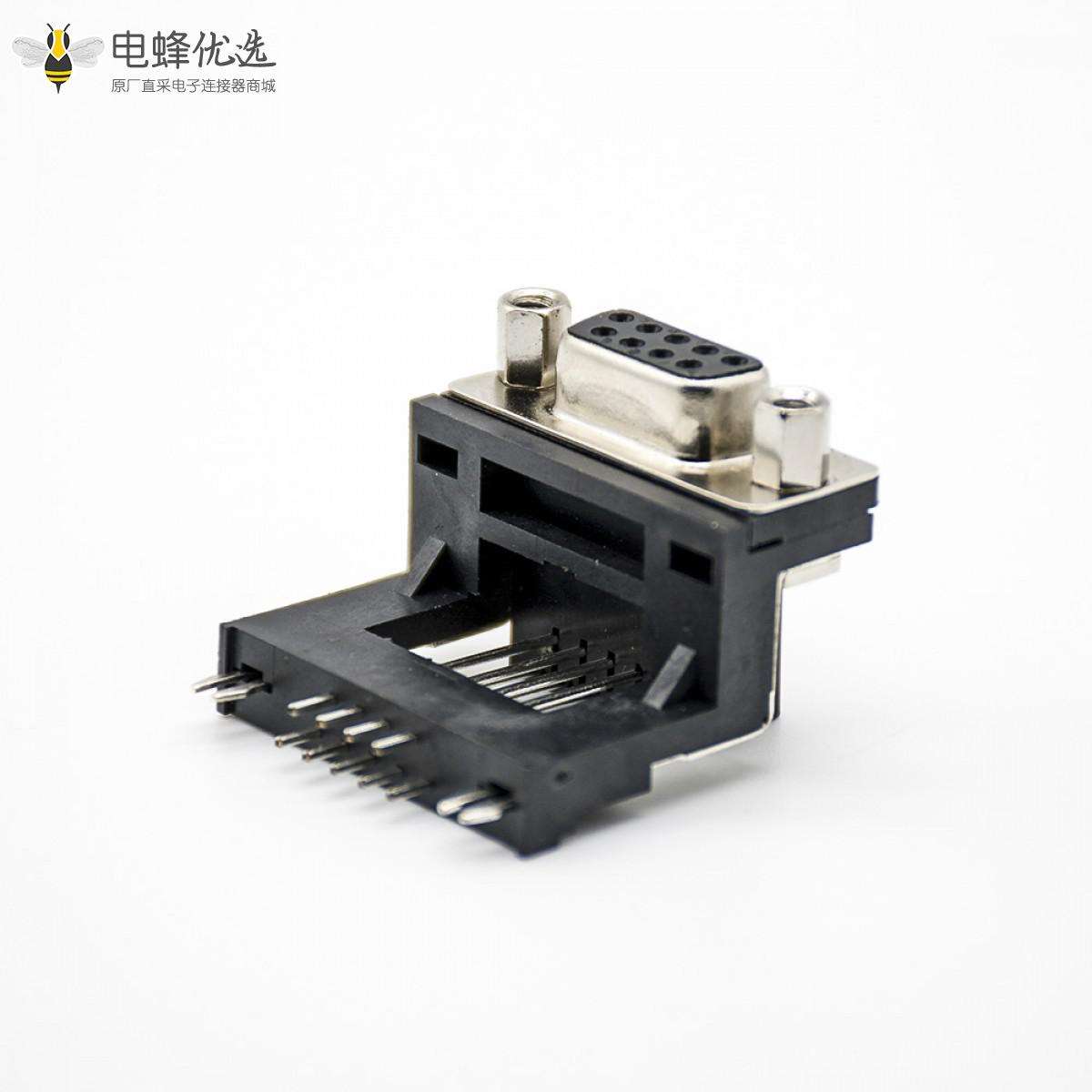 D-sub,标准型,9 Pin,弯式,母头,黑胶,穿孔,接PCB板;