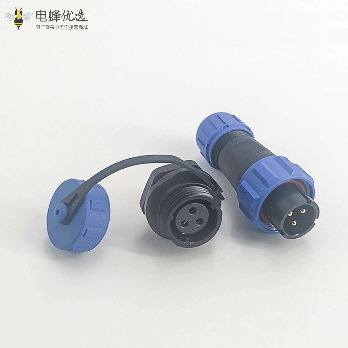 SP13系列,直式,公插头,母后螺母插座,焊接中心针,3芯;