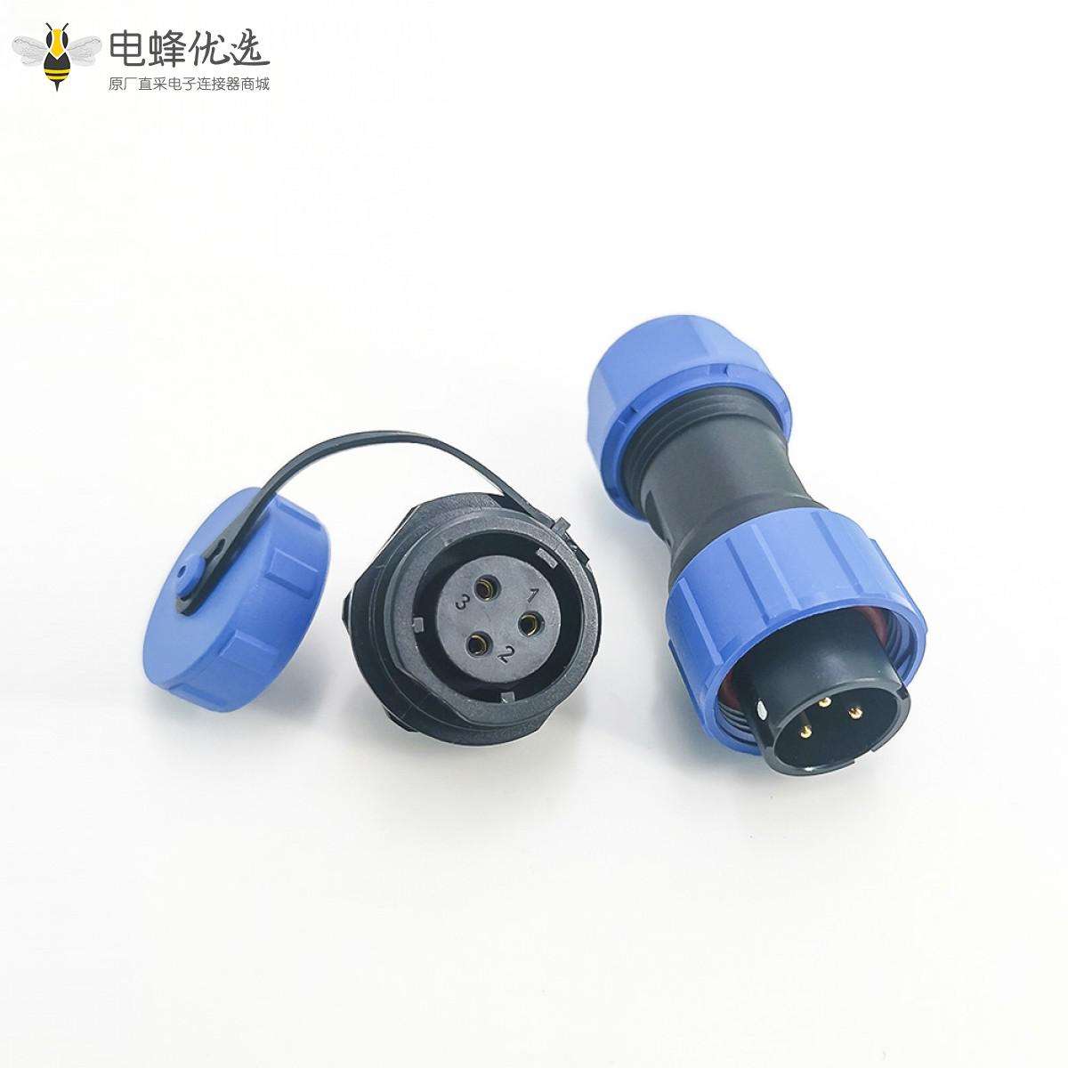 SP17系列,直式,公插头,母后螺母插座,焊接中心针,3芯;
