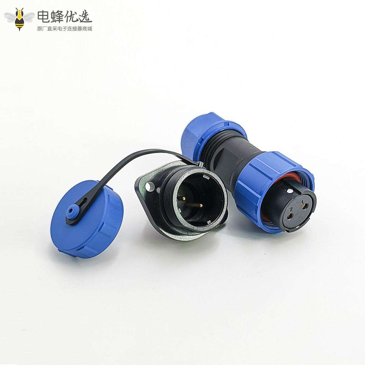 SP17系列,直式,母插头,公菱形插座,2孔法兰,面板安装,焊接中心针,2芯;