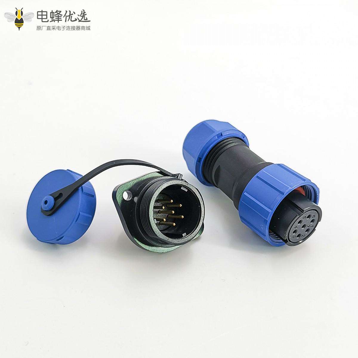 SP17系列,直式,母插头,公菱形插座,2孔法兰,面板安装,焊接中心针,7芯;