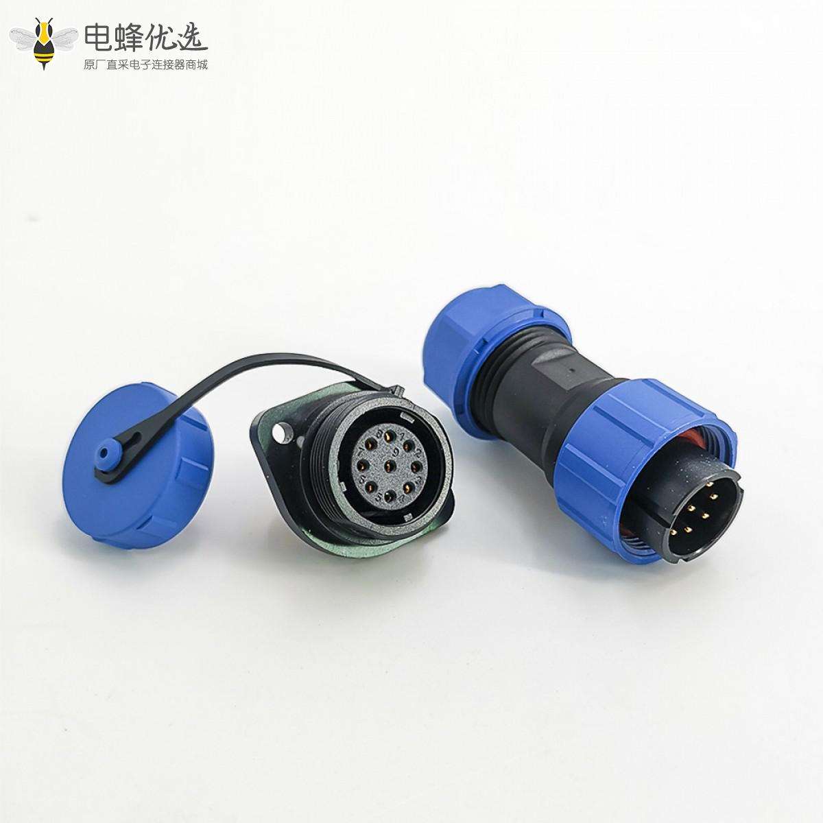 SP17系列,直式,公插头,母菱形插座,2孔法兰,面板安装,焊接中心针,9芯;