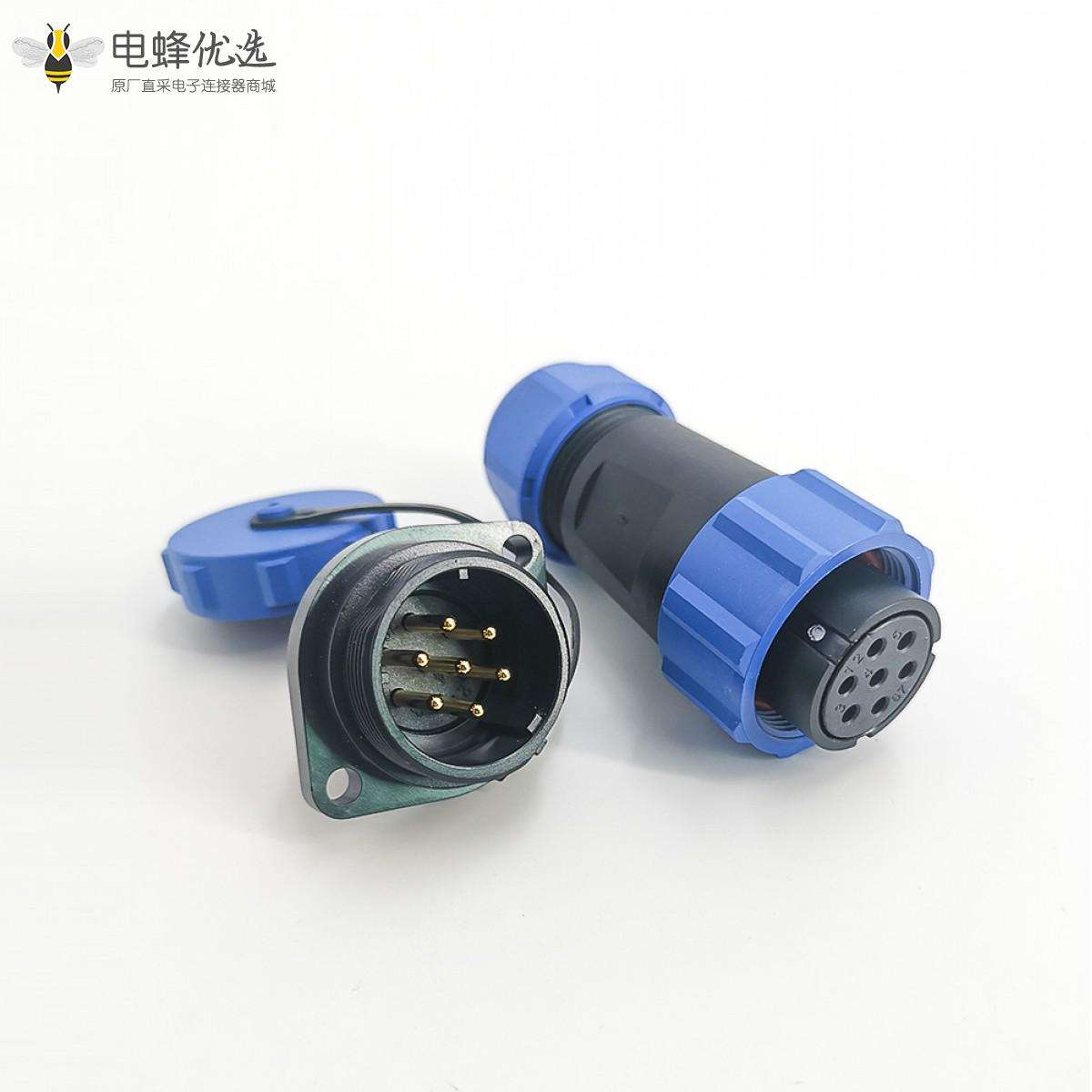 SP21系列,直式,2孔法兰,公菱形插座,母插头,面板安装,焊接中心针,7芯;