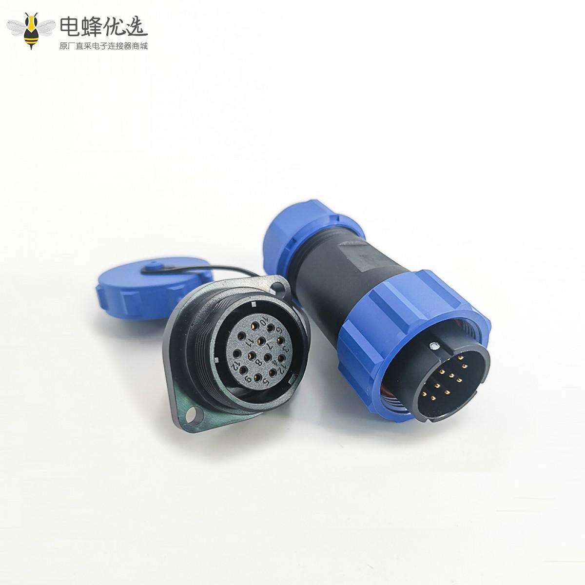 SP21系列,直式,公插头,2孔法兰母菱形插座,面板安装,焊接中心针,12芯;