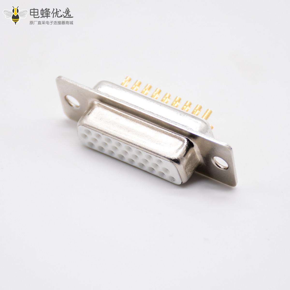 - D-sub连接器,车针型,母头,26芯,3排,镀镍,直式,焊杯,白色胶芯;
