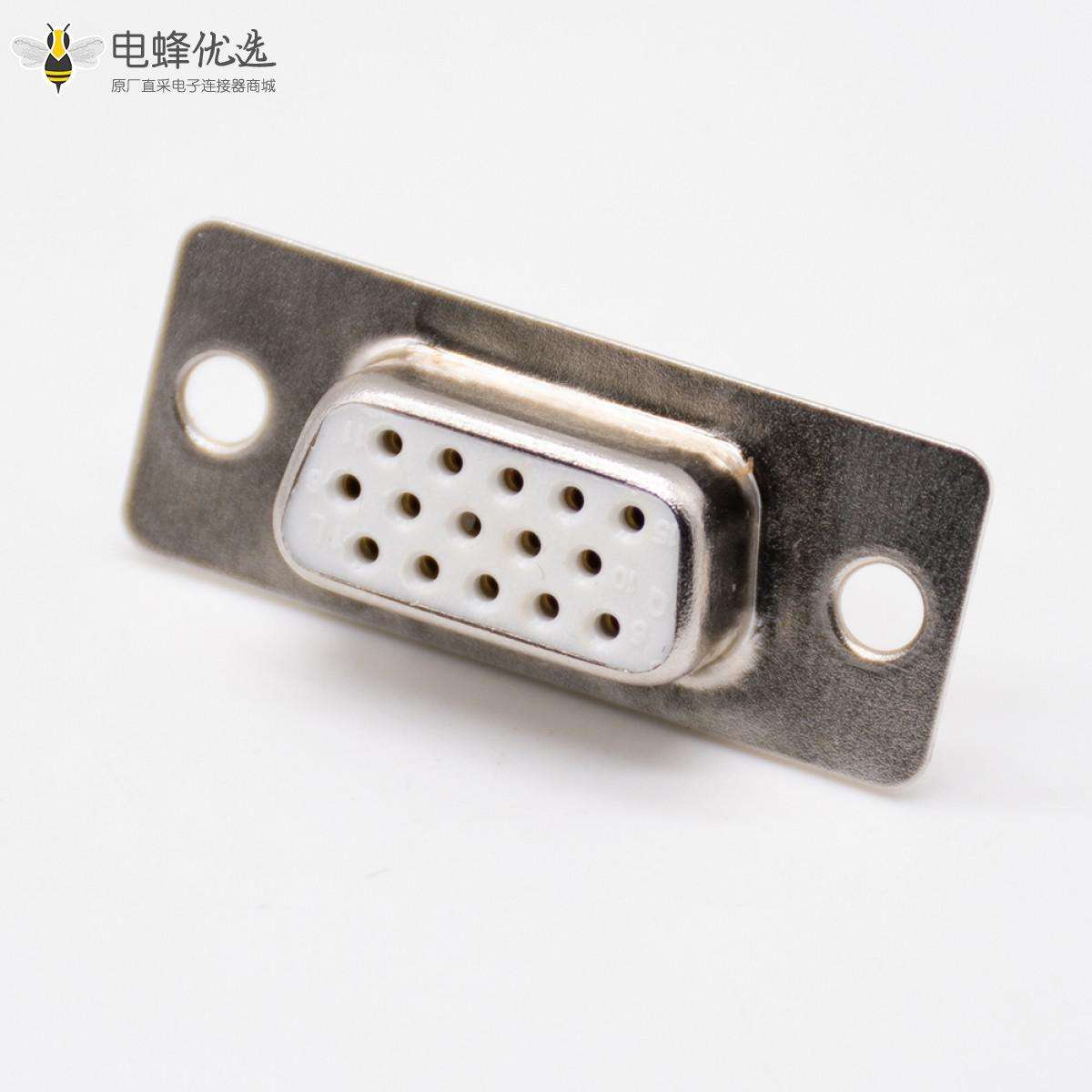 D-sub连接器,标准型,冲针,母头,15芯,3排,镀镍,直式,焊杯,白色胶芯;