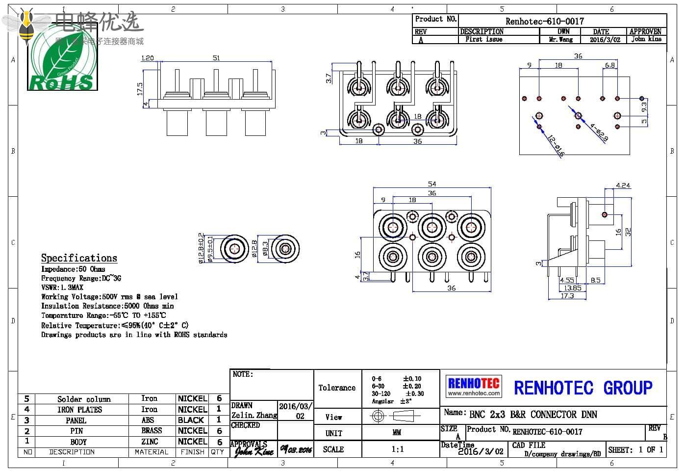 - PCB板端,母头,弯式,锌合金,RF射频同轴,BNC连接器,50欧姆,rca;