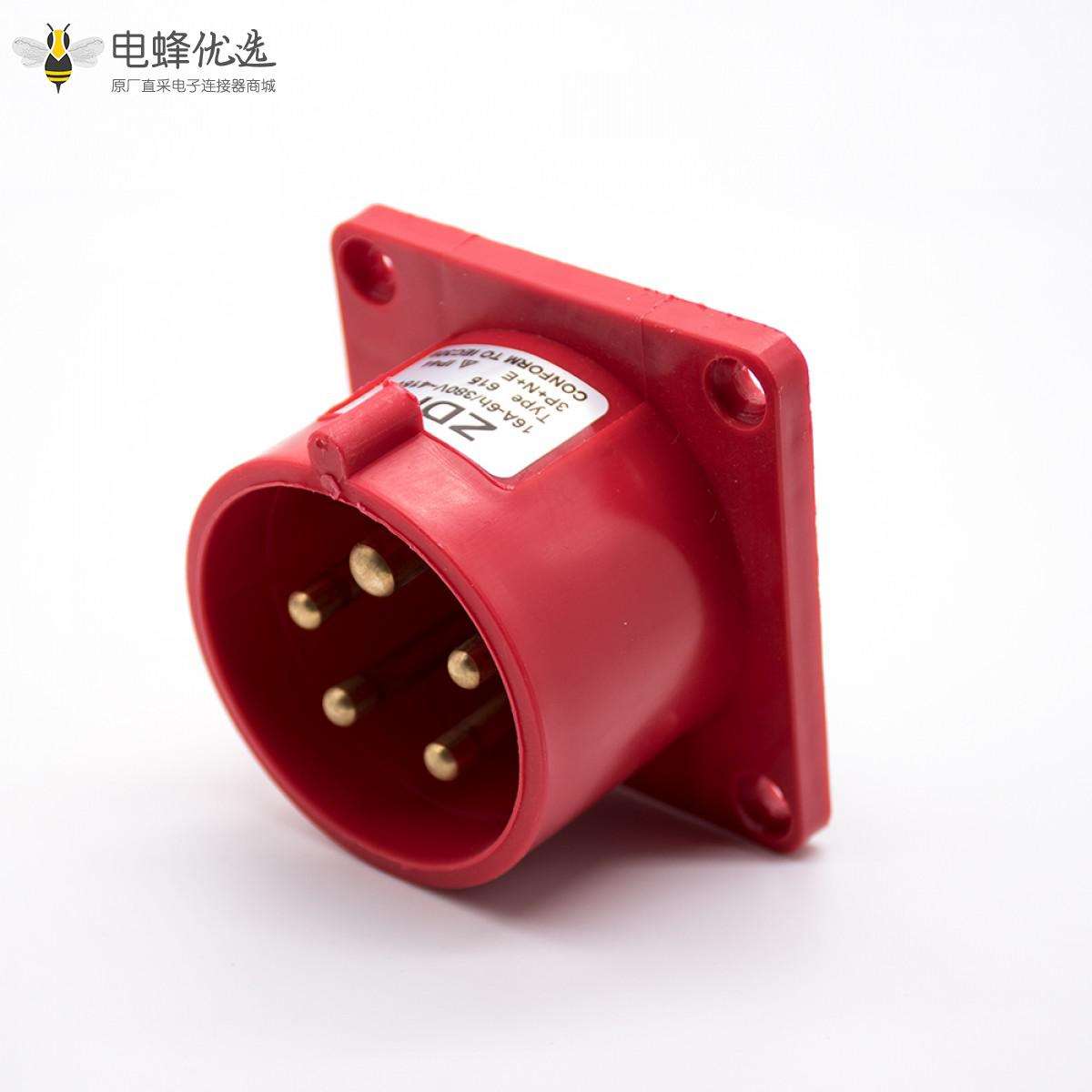 暗装公插座, 5芯, 公头, 16A, 380V-415V, IP44, 3P+N+E, 红色;