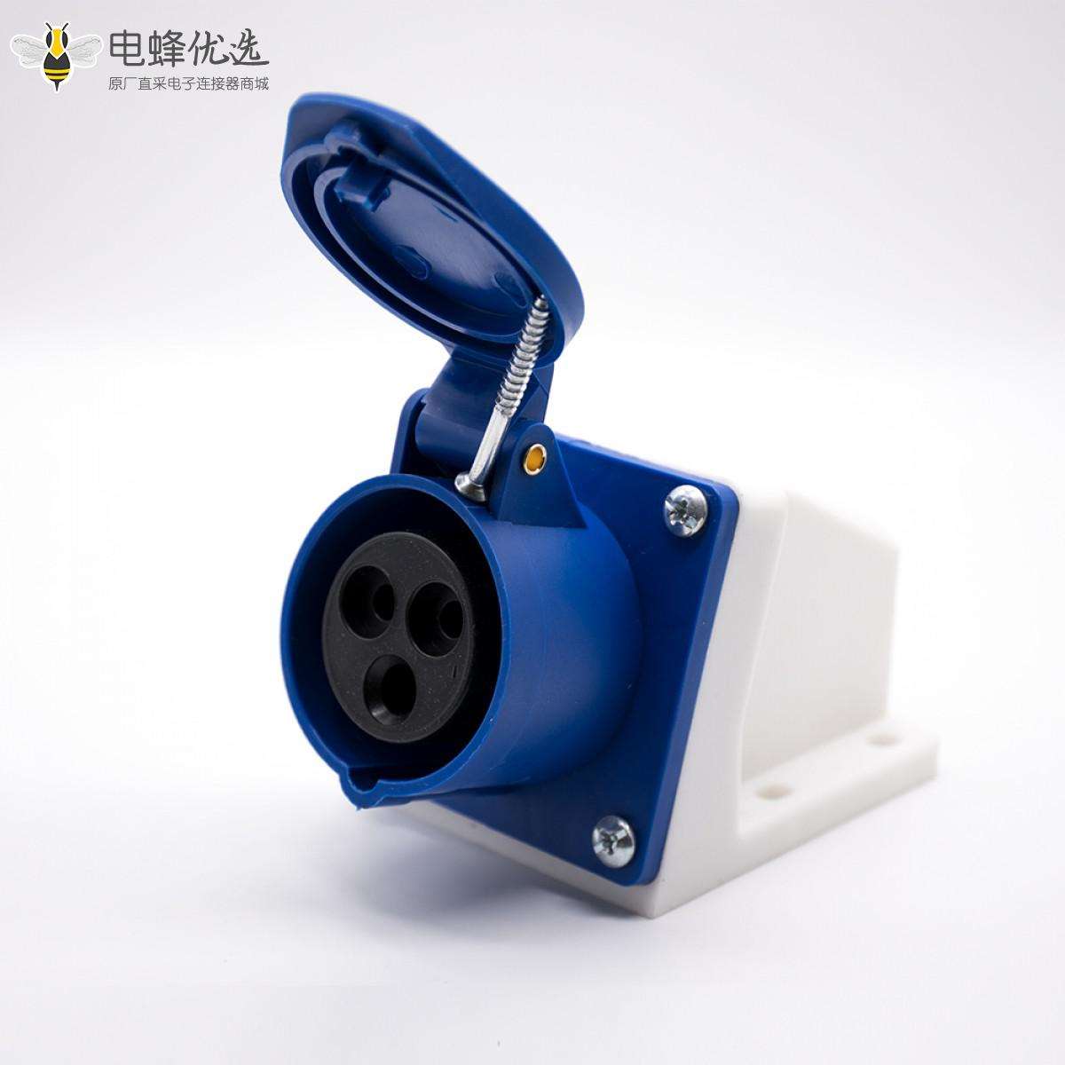 明装插座, 3芯, 母头, 16A, 220V-240V, IP44, 2P+E, 蓝色;