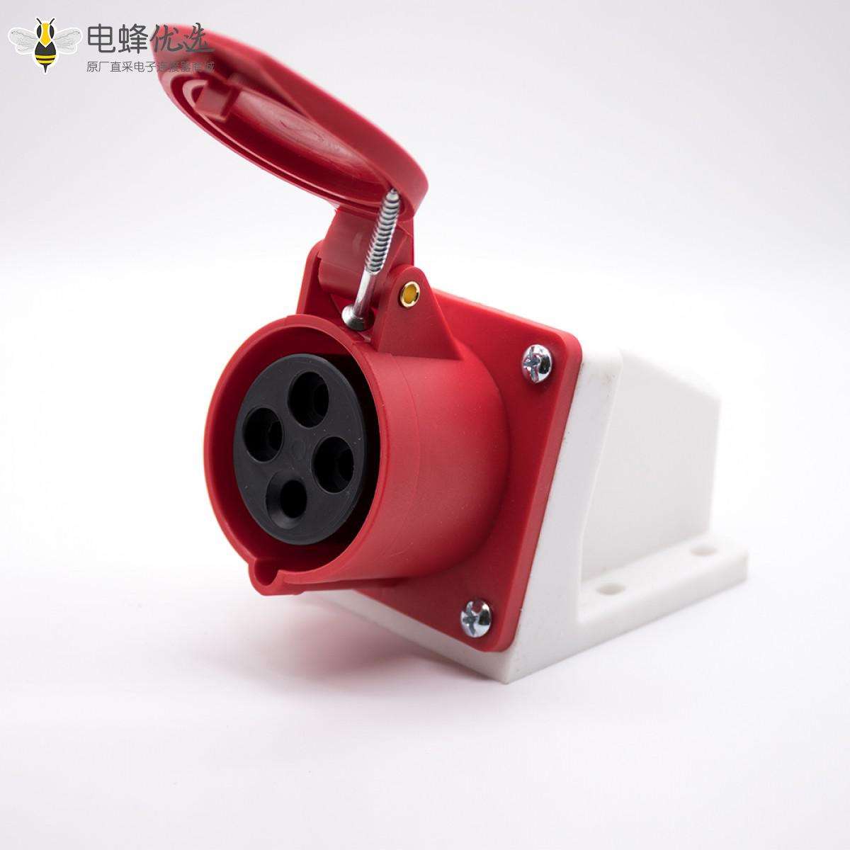 明装插座, 4芯, 母头, 16A, 380V-415V, IP44, 3P+E, 红色;
