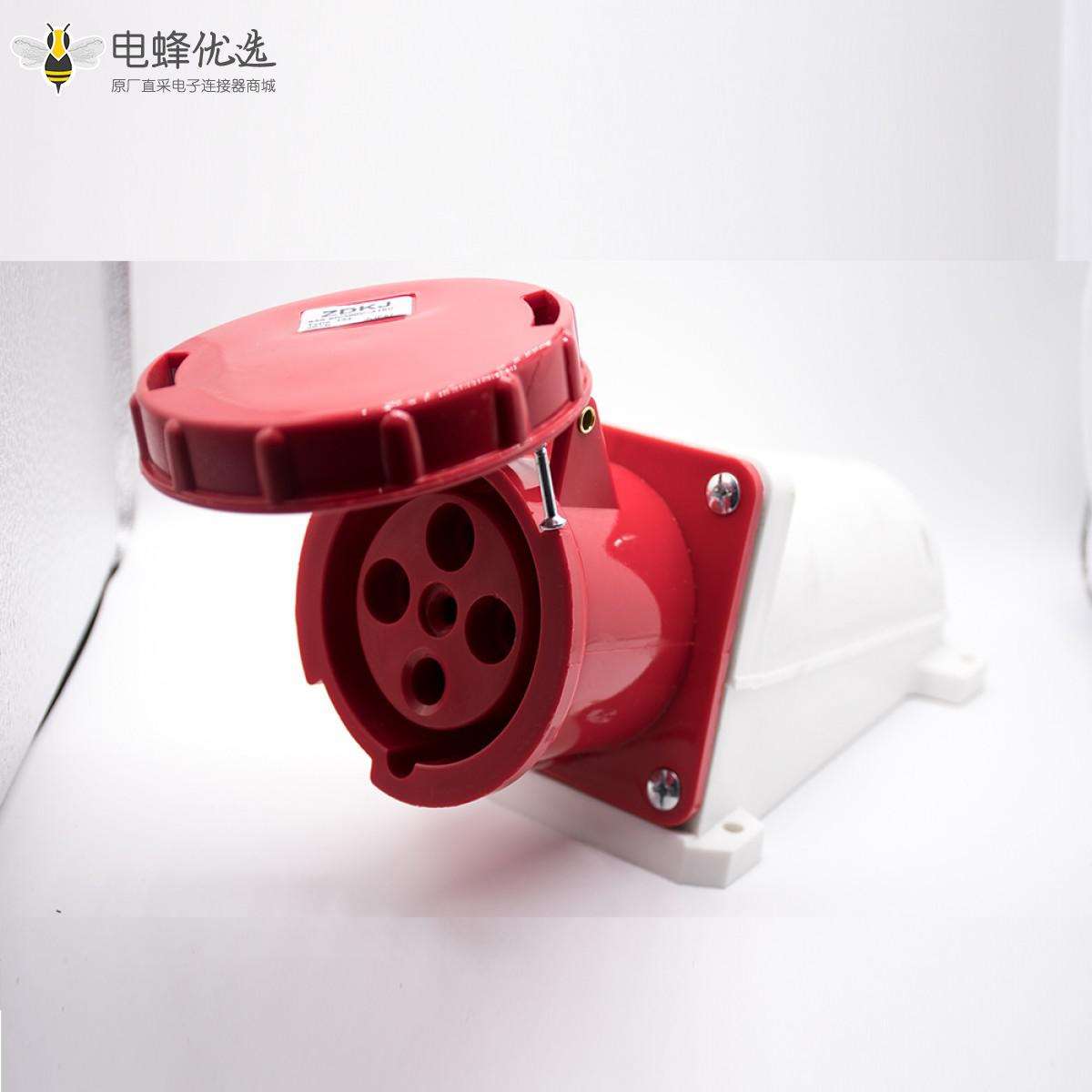 明装插座, 4芯, 母头, 63A, 380V-415V, IP67, 3P+E, 红色;