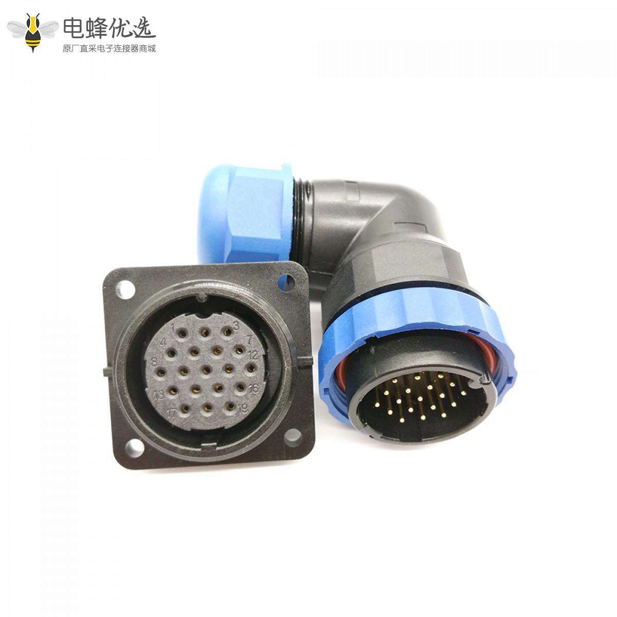 SP29,19芯,弯,插头,插座,方形四孔法兰,面板安装