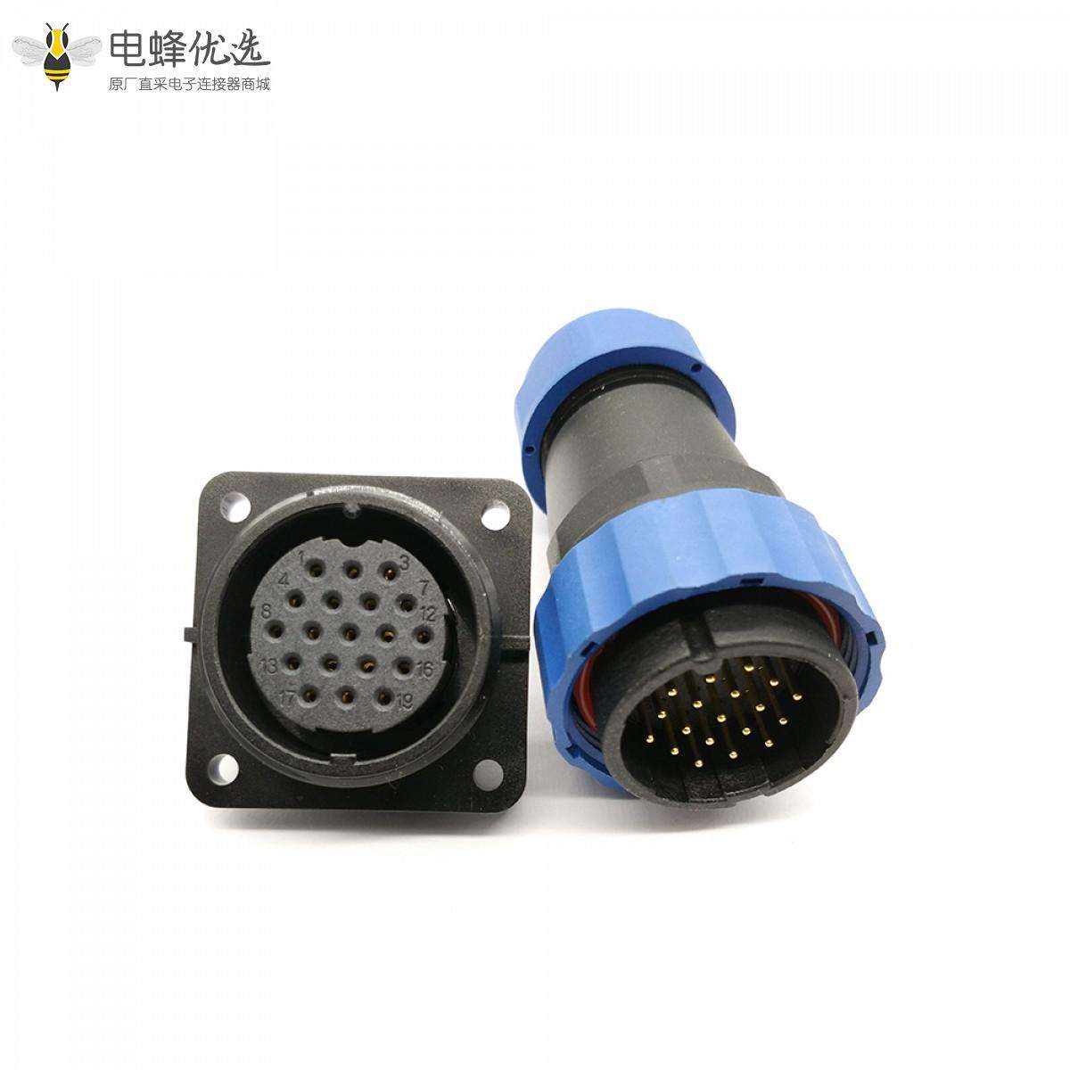 SP29,19芯,直,插头,插座,方形四孔法兰,面板安装