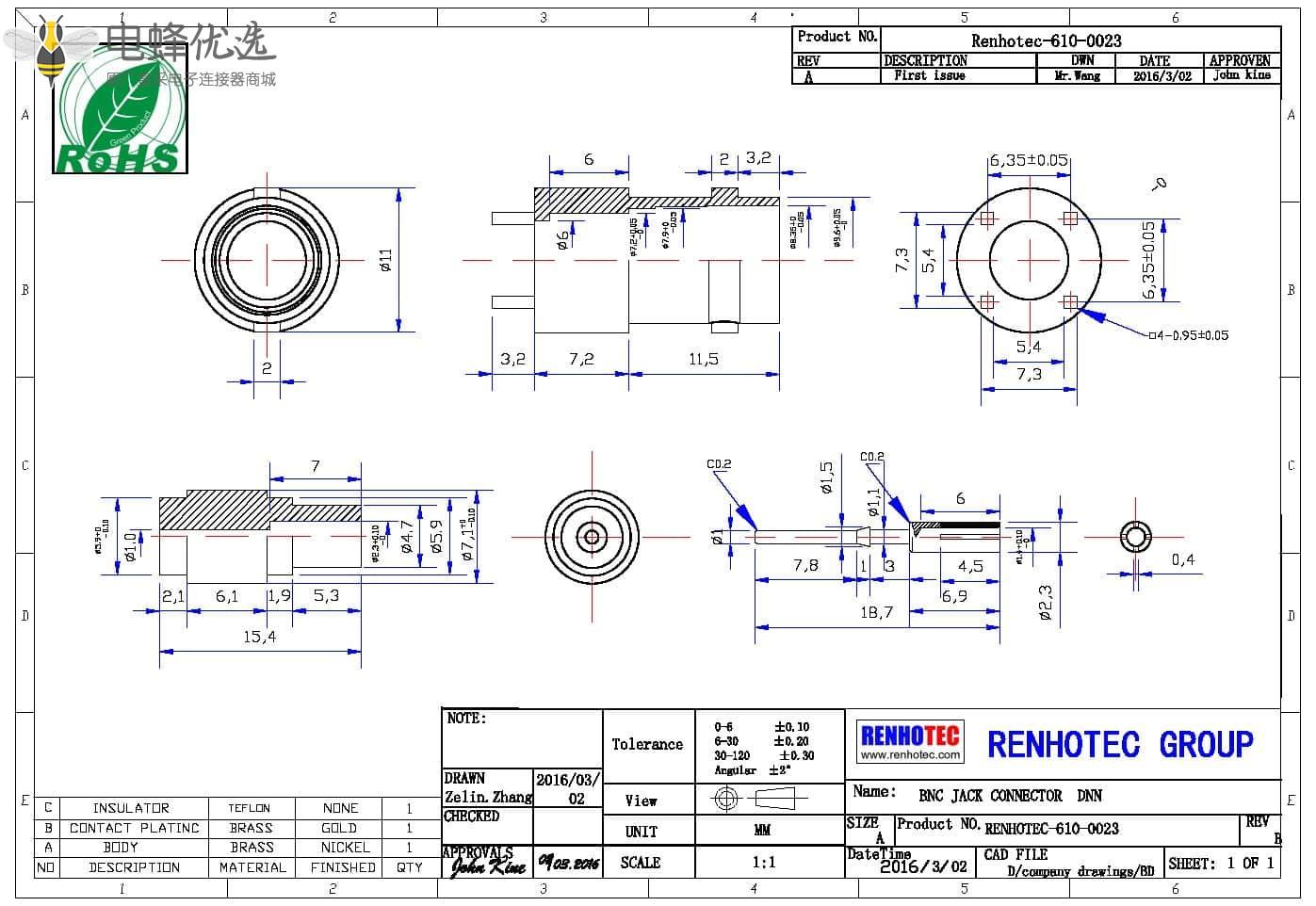 - 中心接触电阻:≦ 1.5 mΩ (Milliohms max.)