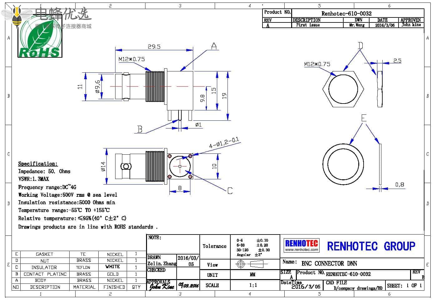 - 阻抗: 50 ohm