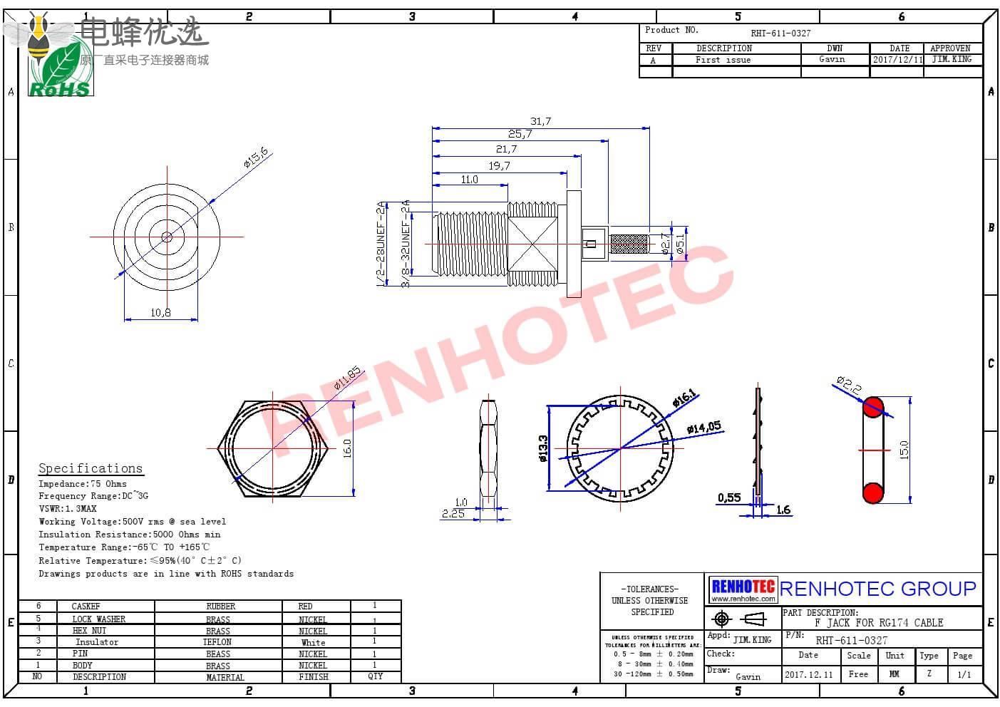 - 阻抗:75 ohm