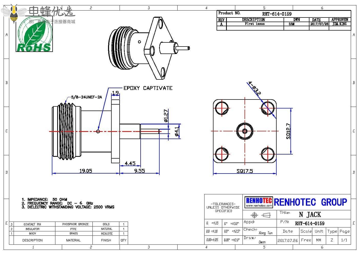 - 阻抗:50 ohm