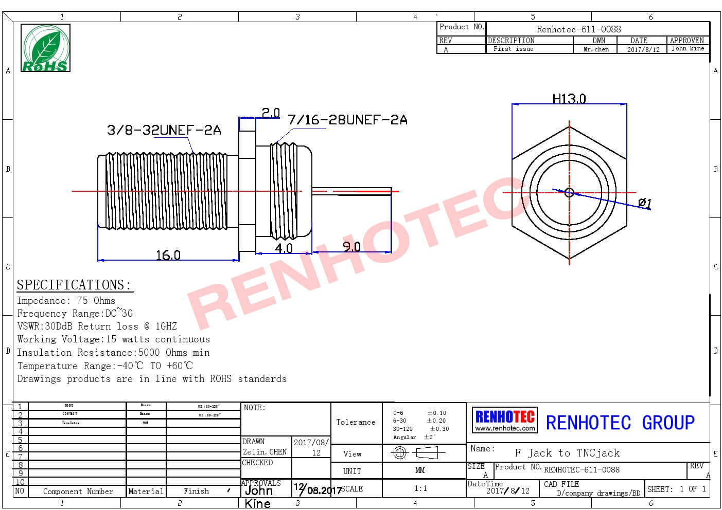 - F头,直式,75欧姆,穿墙,同轴连接器;